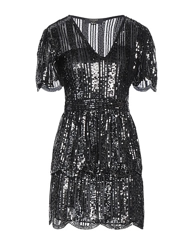 Kleid mit Pailletten, Tüll, zweifarbiger Print, Pailletten, V-Ausschnitt, kurze Ärmel, Innen teilweise gefüttert, Reißverschluss, Ohne Taschen, Handwäsche oder Trockenreinigung, nicht Bleichen, nicht bügeln, Trockner ungeeignet, Das ideale Outfit für Ihre Partys, das Stil, Eleganz und einen Hauch von Glamour vereint
