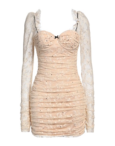 Bodycon-Kleid, Spitze, Mit Stretch-Anteil, Einfarbig mit Applikationen, Mit Raffung, Kristalle, Rüschen, Herzausschnitt, lange Ärmel, Top mit eingesetztem BH, Verschluss mit Häkchen, Reißverschluss, Handwäsche, nicht Bleichen, Trockner ungeeignet, nicht bügeln, Das ideale Outfit für Ihre Partys, das Stil, Eleganz und einen Hauch von Glamour vereint