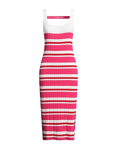 Bodycon-Kleid, Handgestrickt, Leichter Strick, Streifen, Besticktes Logo, Rundhalsausschnitt, ärmellos, ungefüttert, Ohne Taschen, Schlitz seitlich, Handwäsche, nicht Bleichen, Trockner ungeeignet, Die Bekleidung dieses Brands fällt klein aus