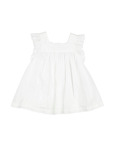 Tuch, Lochstickerei, einfarbig, Plissiert, Rundhalsausschnitt, kurze Ärmel, gefüttert, Knopfverschluss, Maschinenwäsche, nicht Bleichen, Trockner ungeeignet