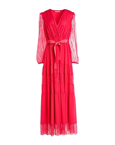 A-Linien-Kleid, Krepp, Spitze, zweifarbiger Print, Brand Logo, Gürtel, Wickel-Effekt, V-Ausschnitt, lange Ärmel, elastische Bündchen, gefüttert, Taille mit Gummiband, Handwäsche, nicht Bleichen, Trockner ungeeignet