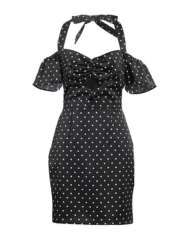A-Linien-Kleid, Satin, Punkte, Brand Logo, tiefer Ausschnitt, kurze Ärmel, gefüttert, Ohne Taschen, Stretch, Handwäsche, nicht Bleichen, Trockner ungeeignet