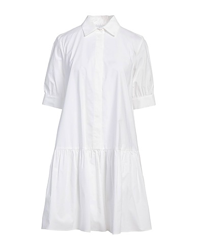 Modell Hemdblusenkleid, Tuch, einfarbig, ohne Applikationen, Klassischer Kragen, kurze Ärmel, ungefüttert, Verschluss mit verdeckten Knöpfen, Stretch, Maschinenwäsche oder Reinigung, nicht Bleichen, Trockner ungeeignet