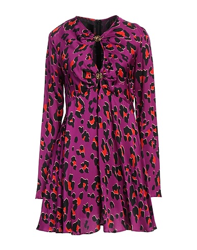 A-Linien-Kleid, Satin, Leopardenmuster, Brand Logo, V-Ausschnitt, lange Ärmel, Innen teilweise gefüttert, Reißverschluss, Knopfverschluss, Ohne Taschen, Maschinenwäsche, nicht Bleichen, Trockner ungeeignet
