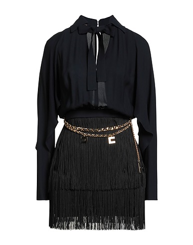 Bodycon-Kleid, Georgette, Krepp, Einfarbig mit Applikationen, Fransen, abnehmbare Applikation, Schleifenausschnitt, lange Ärmel, Innen teilweise gefüttert, Reißverschluss, Verschluss mit Häkchen, Set 2 Teile, Chemische Reinigung, nicht Bleichen, Trockner ungeeignet, Das ideale Outfit für Ihre Partys, das Stil, Eleganz und einen Hauch von Glamour vereint