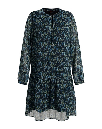 A-Linien-Kleid, Voile, Mit Metallic-Effekt, Blumenmuster, ohne Applikationen, Kragen zum Schnüren, lange Ärmel, Sportmanschetten mit Knöpfen, Innen teilweise gefüttert, Handwäsche oder Trockenreinigung, nicht Bleichen, Trockner ungeeignet