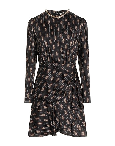 Bodycon-Kleid, Satin, Paisley-Print, Mit Raffung, Rüschen, Kristalle, Rundhalsausschnitt, lange Ärmel, gefüttert, 1 Knopf, Reißverschluss, Enthält nichttextile Teile tierischen Ursprungs., Chemische Reinigung, nicht Bleichen, Trockner ungeeignet