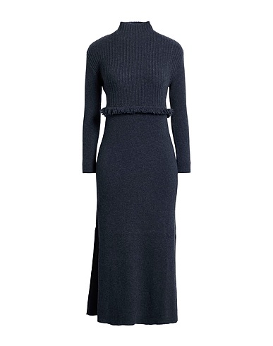 A-Linien-Kleid, Kaschmir, Rippenmuster, Leichter Strick, einfarbig, Brand Logo, Perkins-Kragen, lange Ärmel, ungefüttert, Chemische Reinigung, nicht Bleichen, Trockner ungeeignet