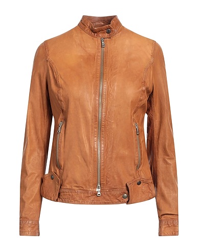Leder, ohne Applikationen, einfarbig, Rollkragen, Einreiher, lange Ärmel, gefüttert, Reißverschluss, Druckknöpfe, viele Taschen, Enthält nichttextile Teile tierischen Ursprungs., Biker-Jacke