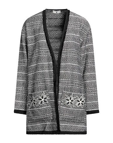 Einreihiger Mantel, Tuch, Brand Logo, zweifarbiger Print, V-Ausschnitt, Einreiher, lange Ärmel, ungefüttert, Taschen