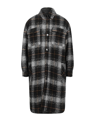 Handgestrickt, Boucléwolle, Mittelschwerer Strick, ohne Applikationen, Schottenmuster, Klassischer Kragen, lange Ärmel, Innen teilweise gefüttert, Knopfverschluss, viele Taschen, Saum mit Seitenschlitz, Chemische Reinigung, nicht Bleichen, Trockner ungeeignet, Einreihiger Mantel