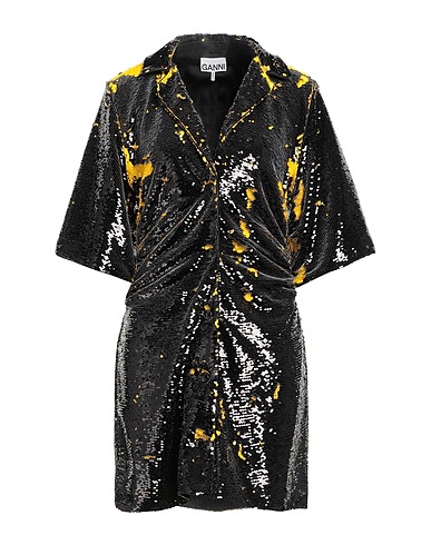 Tuch, Pailletten, zweifarbiger Print, Reverskragen, 3/4 Arm, gefüttert, Knopfverschluss, Ohne Taschen, Handwäsche oder Trockenreinigung, nicht Bleichen, Trockner ungeeignet, Lockere Passform, Kleid mit Pailletten