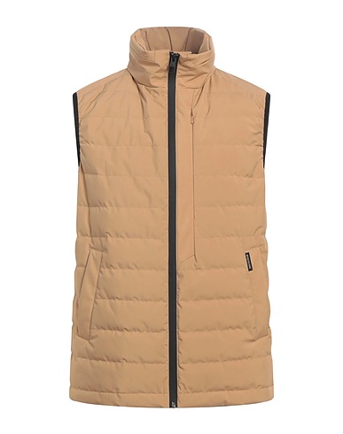 Hightech-Gewebe, Brand Logo, Mit Paspeln, einfarbig, Kapuzenkragen, Einreiher, ärmellos, mit Entenfedern gefüttert, Reißverschluss, viele Taschen, Enthält nichttextile Teile tierischen Ursprungs., Maschinenwäsche, nicht Bleichen, Trockner ungeeignet