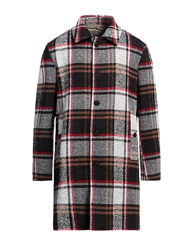 Einreihiger Mantel, Flanell, Boucléwolle, Schottenmuster, ohne Applikationen, Klassischer Kragen, lange Ärmel, Innen teilweise gefüttert, Knopfverschluss, Leistentaschen, Chemische Reinigung, nicht Bleichen, Trockner ungeeignet