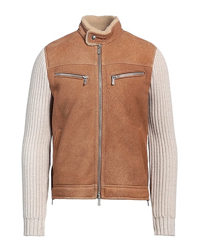 Shearling-Jacke, Wildleder, Handgestrickt, Schwerer Strick, zweifarbiger Print, ohne Applikationen, Rollkragen, Einreiher, lange Ärmel, Shearling-Futter, Reißverschluss, Verschluss mit Druckknöpfen, viele Taschen, Enthält nichttextile Teile tierischen Ursprungs., nicht mit Wasser waschen, nicht Bleichen, Trockner ungeeignet, nicht bügeln
