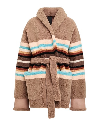 Shearling-Jacke, Shearling, Gürtel, Multicolor-Print, Reverskragen, lange Ärmel, ungefüttert, Enthält nichttextile Teile tierischen Ursprungs., Trockenreinigung oder Reinigung durch den Fachmann, nicht Bleichen, Trockner ungeeignet