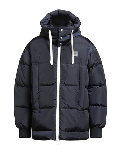 Kurze Daunenjacke, Hightech-Gewebe, Brand Logo, Einfassungen aus Strick, einfarbig, Kragenabschluss mit abnehmbarer Kapuze, lange Ärmel, Daunenfutter, Schwere Füllung, Reißverschluss, Verschluss mit Druckknöpfen, Taschen mit Reißverschluss, Innentasche, Enthält nichttextile Teile tierischen Ursprungs., Maschinenwäsche, nicht Bleichen, Trockner ungeeignet