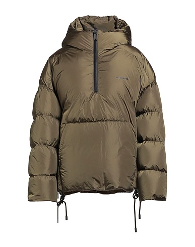 Kurze Daunenjacke, Hightech-Gewebe, Brand Logo, einfarbig, Kapuzenkragen, lange Ärmel, mit Entenfedern gefüttert, Schwere Füllung, Reißverschluss, Leistentaschen, Saum mit Reißverschluss, Enthält nichttextile Teile tierischen Ursprungs., Chemische Reinigung, nicht Bleichen, Trockner ungeeignet
