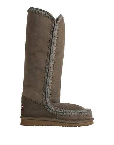 Gefütterte Stiefel, Wildleder-Look, zweifarbiger Print, Brand Logo, Shearling-Futter, runde Spitze, ohne Absatz, Gummisohle, Enthält nichttextile Teile tierischen Ursprungs.