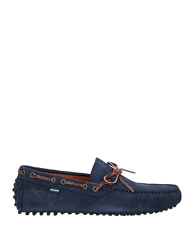 Mokassins, Wildleder, Einfarbig mit Applikationen, Brand Logo, Innenfutter aus Leder, runde Spitze, ohne Absatz, Strukturierte Sohle, Enthält nichttextile Teile tierischen Ursprungs.