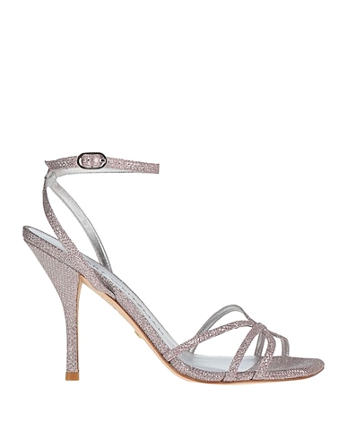 Mesh-Gewebe, Lamé, ohne Applikationen, einfarbig, Rückseite aus Leder, Fesselriemchenverschluss, elastische Einsätze, quadratische Spitze, Pfennigabsatz, gefasster Absatz, Ledersohle, Enthält nichttextile Teile tierischen Ursprungs., Sandalen mit knöchelriemchen