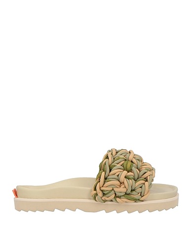 Hightech-Gewebe, ohne Applikationen, Multicolor-Print, Rückseite aus Leder, runde Spitze, ohne Absatz, flexible Gummisohle, Enthält nichttextile Teile tierischen Ursprungs., Sandalen mit einem riemen