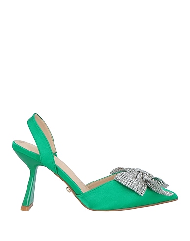 Satin, Kristalle, Schleife, Einfarbig mit Applikationen, gefüttert, Spitze, Stiletto-Absatz, Gummisohle, Slingback-Pumps