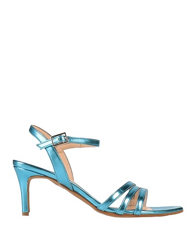 Leder, Lamé-Look, ohne Applikationen, einfarbig, Innenfutter aus Leder, Fesselriemchenverschluss, runde Spitze, Stiletto-Absatz, gefasster Absatz, Gummisohle, Enthält nichttextile Teile tierischen Ursprungs., Sandalen mit knöchelriemchen