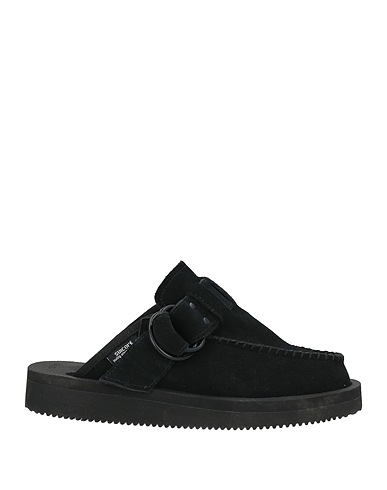 Mules, Wildleder, Brand Logo, einfarbig, Innenfutter aus Leder, Schnallenverschluss, runde Spitze, ohne Absatz, flexible Gummisohle, Enthält nichttextile Teile tierischen Ursprungs., klein ausfallend
