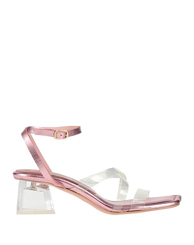 Leder, Plastik, Mit Metallic-Effekt, ohne Applikationen, einfarbig, Innenfutter aus Leder, Knöchelriemen mit Schnalle, quadratische Spitze, Geometrischer Absatz, Ledersohle, Enthält nichttextile Teile tierischen Ursprungs., Sandalen mit knöchelriemchen