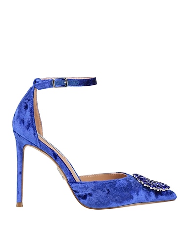 Pumps, Samt, Einfarbig mit Applikationen, Kristalle, gefüttert, Knöchelriemen mit Schnalle, Spitze, Stiletto-Absatz, gefasster Absatz, Gummisohle