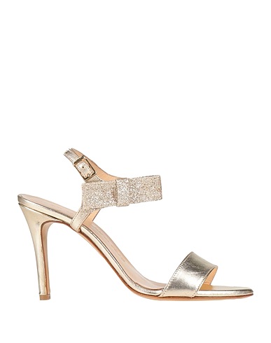 Leder, Mit Metallic-Effekt, Schleife, einfarbig, Innenfutter aus Leder, Schnallenverschluss, runde Spitze, Pfennigabsatz, gefasster Absatz, Ledersohle, Enthält nichttextile Teile tierischen Ursprungs., Sandalen mit knöchelriemchen
