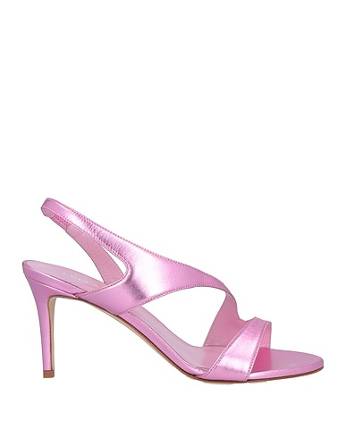 Leder, Mit Metallic-Effekt, ohne Applikationen, einfarbig, Innenfutter aus Leder, Elastischer Riemen, runde Spitze, Pfennigabsatz, Ledersohle, Enthält nichttextile Teile tierischen Ursprungs., Sandalen mit knöchelriemchen
