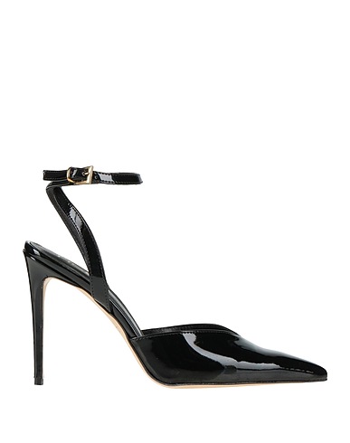Pumps, Synthetisches Material, Lackledereffekt, einfarbig, ohne Applikationen, Innenfutter aus Leder, Knöchelriemen mit Schnalle, Spitze, Stiletto-Absatz, Ledersohle, Enthält nichttextile Teile tierischen Ursprungs.