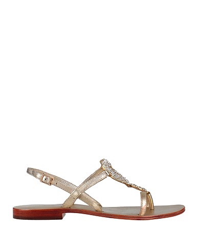 Zehensandalen mit knöchelriemchen, Leder, Mit Metallic-Effekt, Einfarbig mit Applikationen, Kristalle, Innenfutter aus Leder, Knöchelriemen mit Schnalle, runde Spitze, ohne Absatz, Leder/Gummisohle, Enthält nichttextile Teile tierischen Ursprungs.