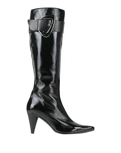 Lackleder, ohne Applikationen, einfarbig, Innenfutter aus Leder, Reißverschluss, Spitze, konischer Absatz, flexible Gummisohle, Enthält nichttextile Teile tierischen Ursprungs., Stiefel