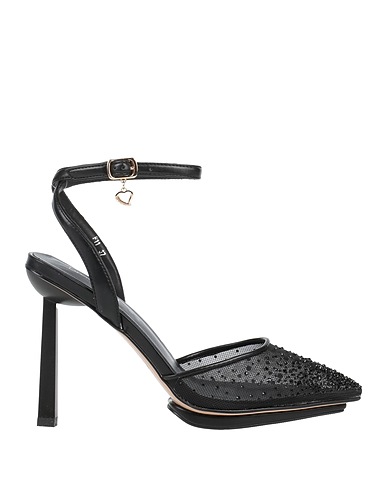 Pumps, Mesh-Gewebe, Leder, Einfarbig mit Applikationen, Mit Glitzer, Innenfutter aus Leder, Knöchelriemen mit Schnalle, Spitze, Diabolo-Absatz, flexible Gummisohle, Enthält nichttextile Teile tierischen Ursprungs.