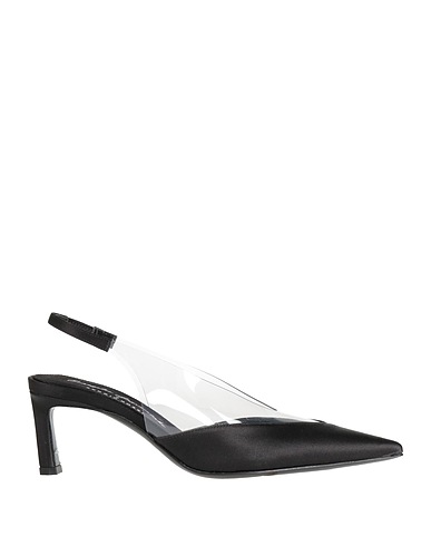 Slingback-Pumps, Satin, Plastik, ohne Applikationen, einfarbig, Innenfutter aus Leder, Elastische Einsätze, Spitze, Pfennigabsatz, Ledersohle, Enthält nichttextile Teile tierischen Ursprungs.