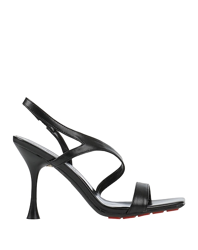Sandalen mit knöchelriemchen, Kunstleder, ohne Applikationen, einfarbig, gefüttert, Elastischer Riemen, quadratische Spitze, Geometrischer Absatz, flexible Gummisohle