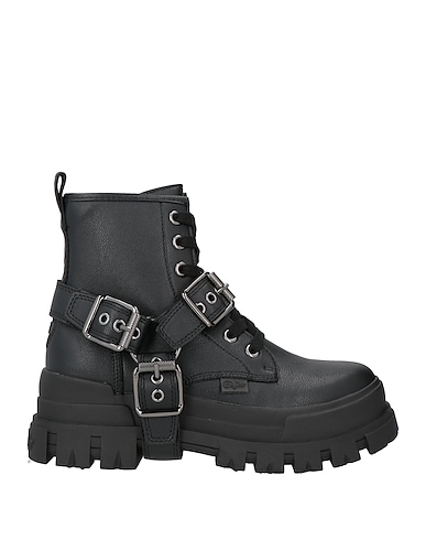 Biker Boots, Kunstleder, einfarbig, Riemchen, Innenfutter aus Stoff, Schnürverschluss, runde Spitze, Blockabsatz, flexible Gummisohle