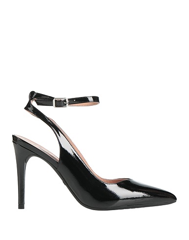 Pumps, Synthetisches Material, einfarbig, ohne Applikationen, Innenfutter aus Leder, Knöchelriemen mit Schnalle, Spitze, Stiletto-Absatz, Gummisohle, Enthält nichttextile Teile tierischen Ursprungs.