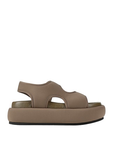 Sandalen mit knöchelriemchen, Scuba-Material, einfarbig, ohne Applikationen, Innenfutter aus Leder, runde Spitze, ohne Absatz, Flatform, Enthält nichttextile Teile tierischen Ursprungs.