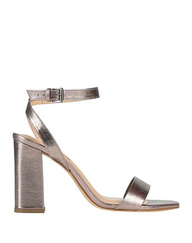 Sandalen mit knöchelriemchen, Leder, Mit Metallic-Effekt, einfarbig, ohne Applikationen, Innenfutter aus Leder, Knöchelriemen mit Schnalle, runde Spitze, Blockabsatz, Gummisohle, Enthält nichttextile Teile tierischen Ursprungs.