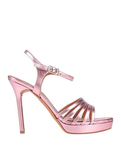 Sandalen mit knöchelriemchen, Kunstleder, Mit Metallic-Effekt, einfarbig, ohne Applikationen, Innenfutter aus Leder, Knöchelriemen mit Schnalle, runde Spitze, Stiletto-Absatz, Ledersohle, Enthält nichttextile Teile tierischen Ursprungs.