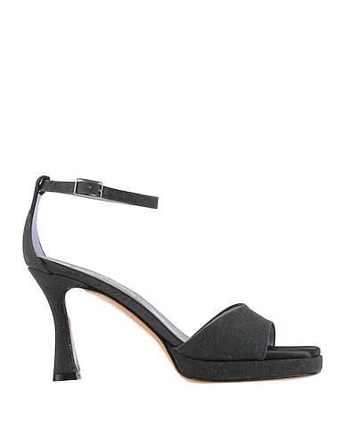 Sandalen mit knöchelriemchen, Tuch, Mit Metallic-Effekt, einfarbig, ohne Applikationen, Innenfutter aus Leder, Knöchelriemen mit Schnalle, quadratische Spitze, Diabolo-Absatz, gefasster Absatz, Ledersohle, Enthält nichttextile Teile tierischen Ursprungs.