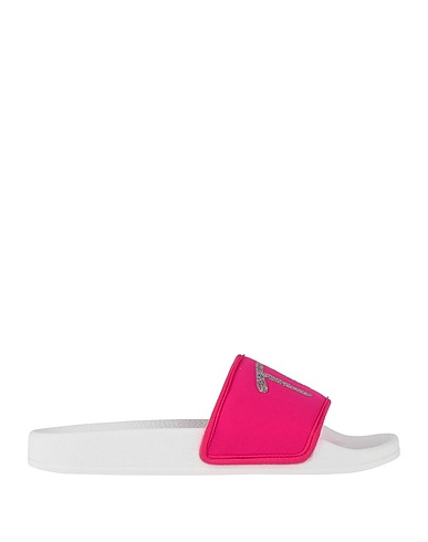Poolsandalen, Scuba-Material, Einfarbig mit Print, Brand Logo, Innenfutter in gummi, runde Spitze, ohne Absatz, flexible Gummisohle
