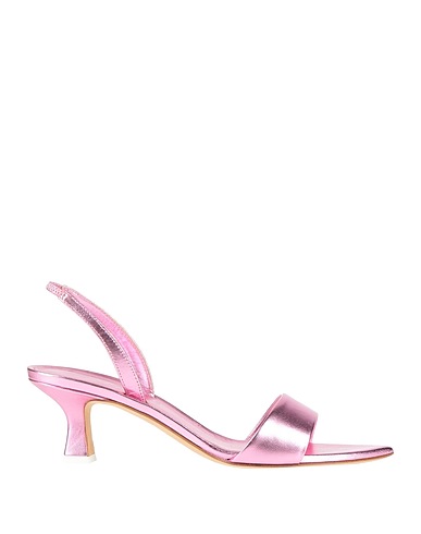 Sandalen mit knöchelriemchen, Leder, Mit Metallic-Effekt, einfarbig, ohne Applikationen, Innenfutter aus Leder, Elastische Einsätze, Spitze, Blockabsatz, gefasster Absatz, Ledersohle, Enthält nichttextile Teile tierischen Ursprungs.