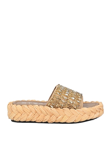 Sandalen mit einem riemen, Seil, Einfarbig mit Applikationen, Kristalle, Innenfutter aus Leder, runde Spitze, Flatform, Gummisohle, Enthält nichttextile Teile tierischen Ursprungs.