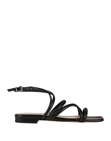 Sandalen mit knöchelriemchen, Leder, einfarbig, ohne Applikationen, Innenfutter aus Leder, Schnallenverschluss, quadratische Spitze, ohne Absatz, Ledersohle, Enthält nichttextile Teile tierischen Ursprungs., groß ausfallend