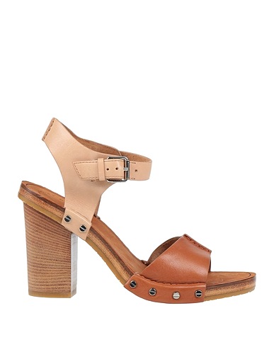 Sandalen mit knöchelriemchen, Leder, einfarbig, ohne Applikationen, Innenfutter aus Leder, Knöchelriemen mit Schnalle, runde Spitze, Blockabsatz, flexible Gummisohle, Enthält nichttextile Teile tierischen Ursprungs.